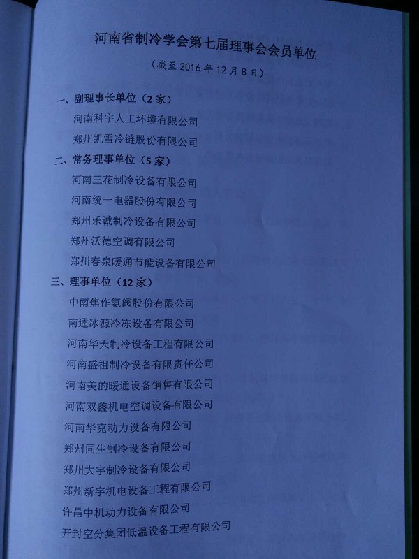2016年12月10日河南省制冷學(xué)會(huì)第七次會(huì)員代表大會(huì)在鄭州順召開(kāi),中南焦作氨閥股份有限公司參加本次大會(huì),并當(dāng)選河南省制冷學(xué)會(huì)理事單位。